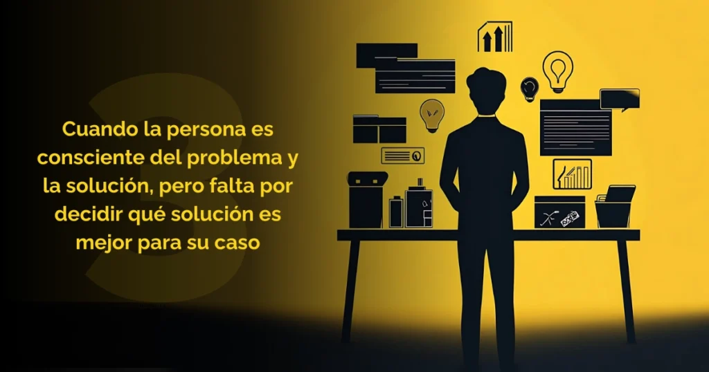 Nivel 4 de consciencia: cuando la persona es consciente del problema y la solución, sabe de posibles soluciones y le falta decidirse por un producto que dé solución a ese problema que tiene